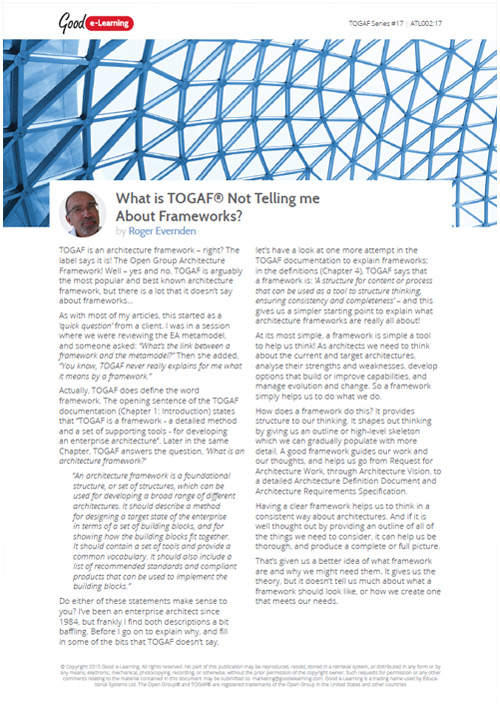 This article aims to find out more about what TOGAF doesn’t say about frameworks…